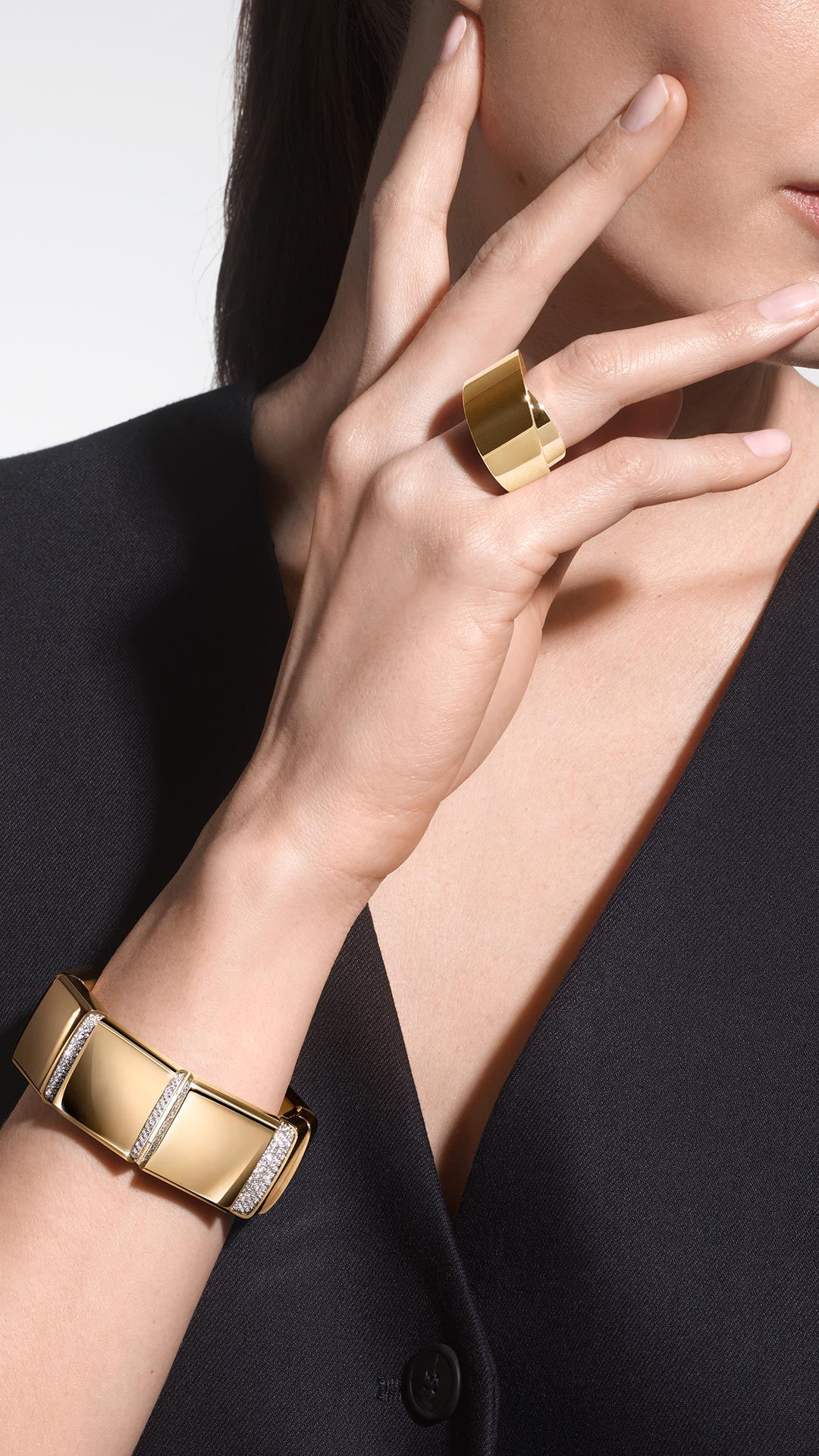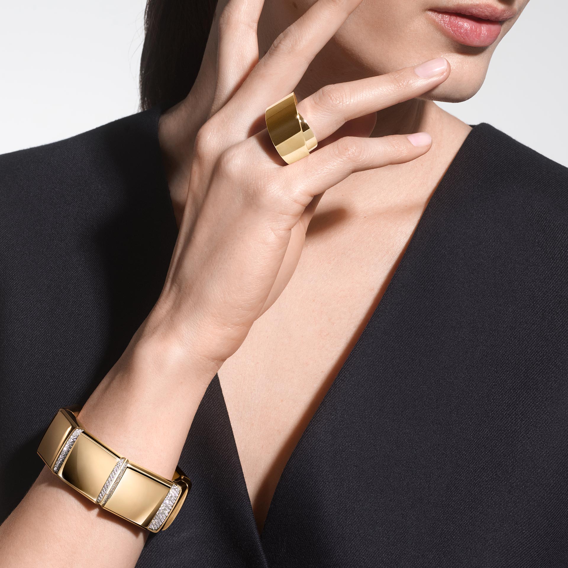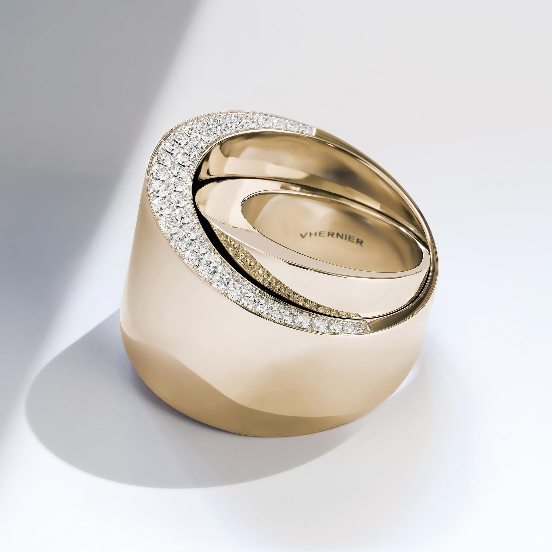 A sculptural ring offering supreme wearability as it is designed in harmony with the body. Cut in bias, in the purest Vhernier tradition, the Tourbillon embodies the hallmarks that have made the Maison unmistakable: pure form, generous volume to caress, and endless movement.
