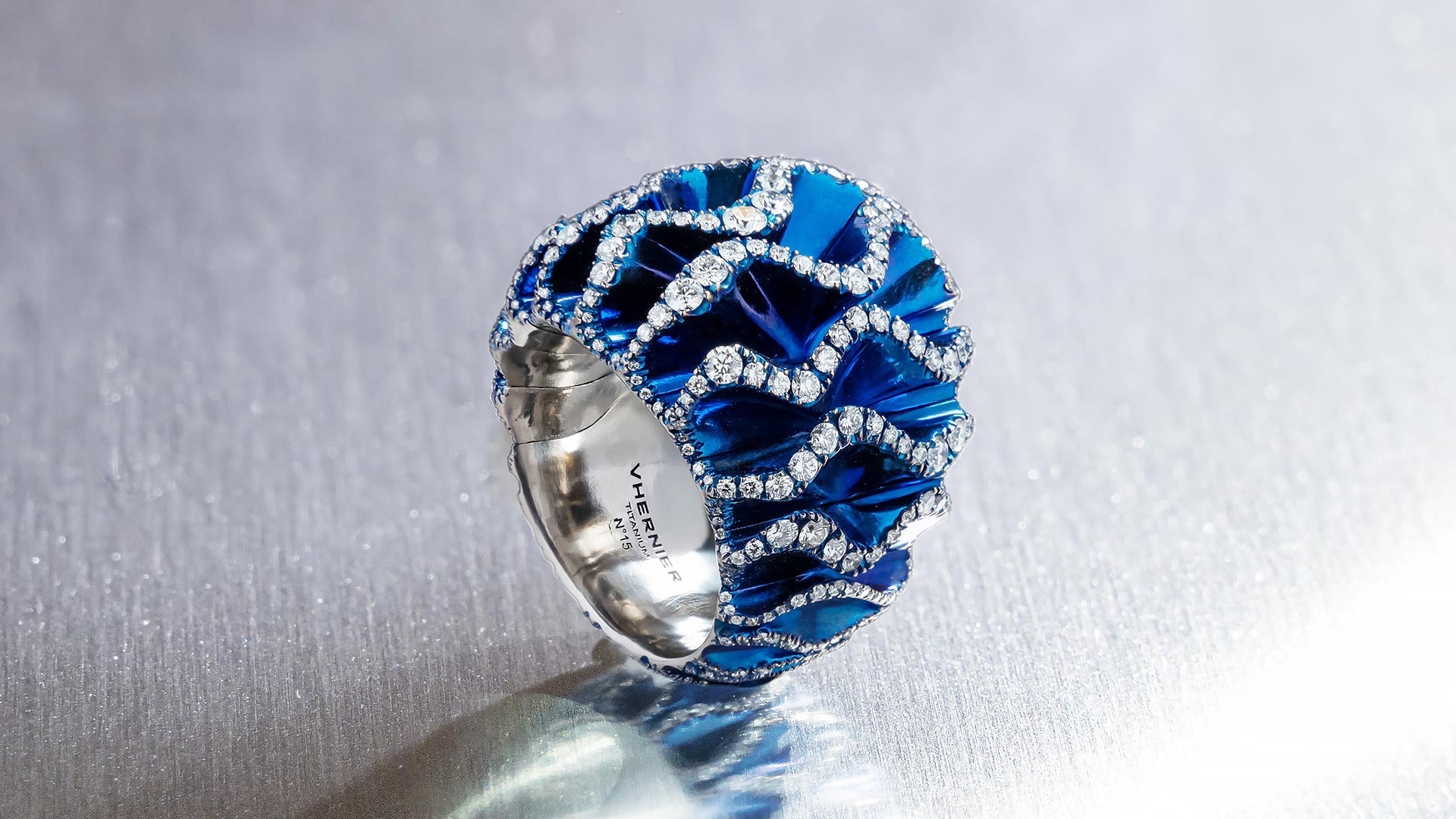 Shaped into fluid, sculptural waves and enhanced by pavé-set diamonds, VELVET High Jewellery explores the interplay of light, colour, and movement, offering a bold and contemporary vision of titanium’s possibilities.