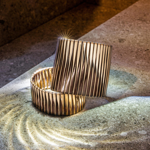 VHERNIER captures the fleeting shimmer of light at dusk in a vibrant sculptural form. A composition defined by rhythm and repetition, animated by ever-changing reflections.
